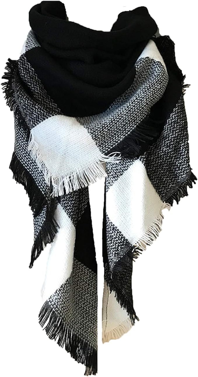 Womens Warm Long Shawl Winter Wraps Large Scarves Knit Cashmere Feel Plaid Triangle Scarf