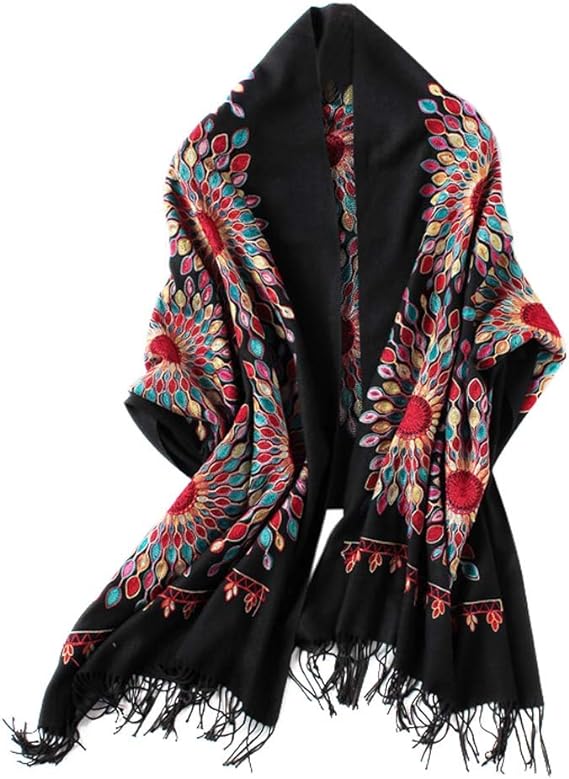 Women's Embroidered Oversize Tassel Shawl Scarf Wraps for Women