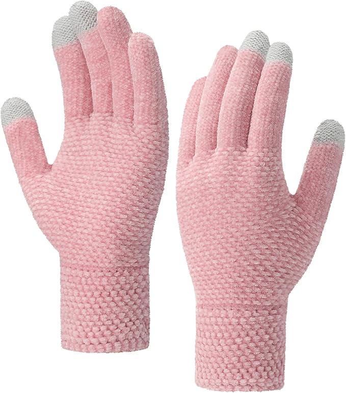 Winter Gloves for Women - Warm Chenille with 3 Touchscreen Fingers Texting, Elastic Cuff Womens Winter Gloves