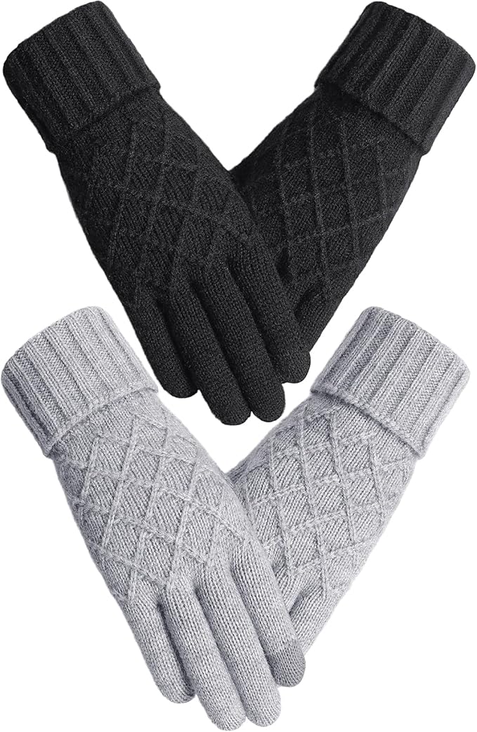 2 Pairs Winter Gloves for Women - Thermal Touchscreen Womens Gloves Knit Elastic Soft Gloves for Cold Weather