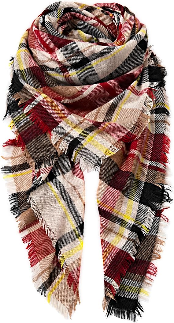 Women's Fall Winter Scarf Classic Tassel Plaid Tartan Warm Soft Chunky Large Blanket Wrap Shawl Scarves