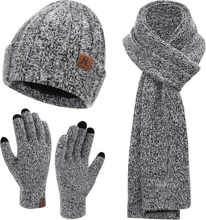 Womens Winter Warm Knit Beanie Hat Touchscreen Gloves Long Neck Scarf Set with Fleece Lined Skull Caps Gifts for Women