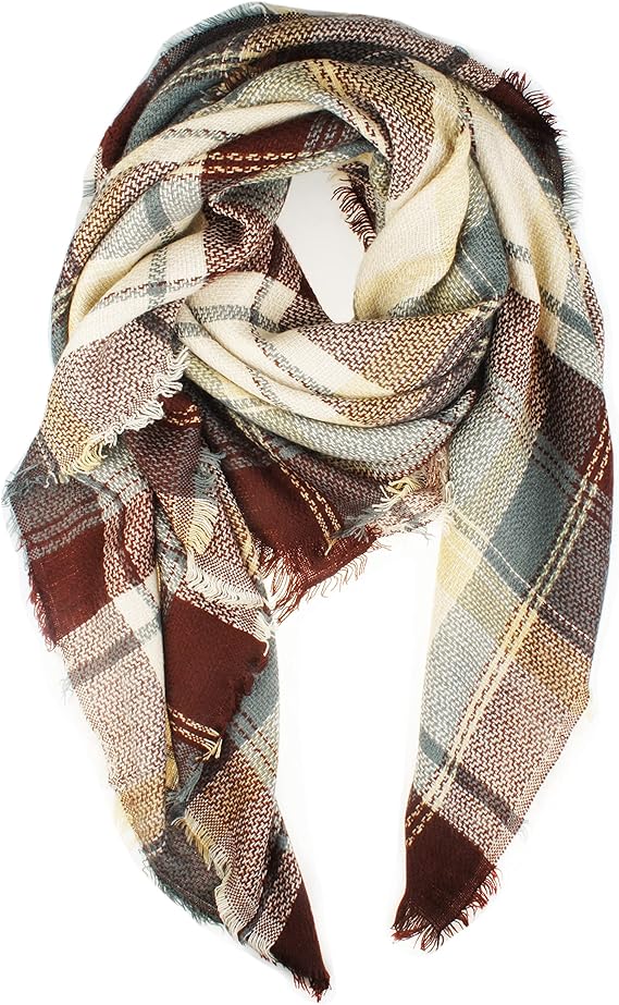 Women's Plaid Blanket Winter Scarf, Warm Cozy Tartan Wrap Oversized Shawl Winter Scarves for Women
