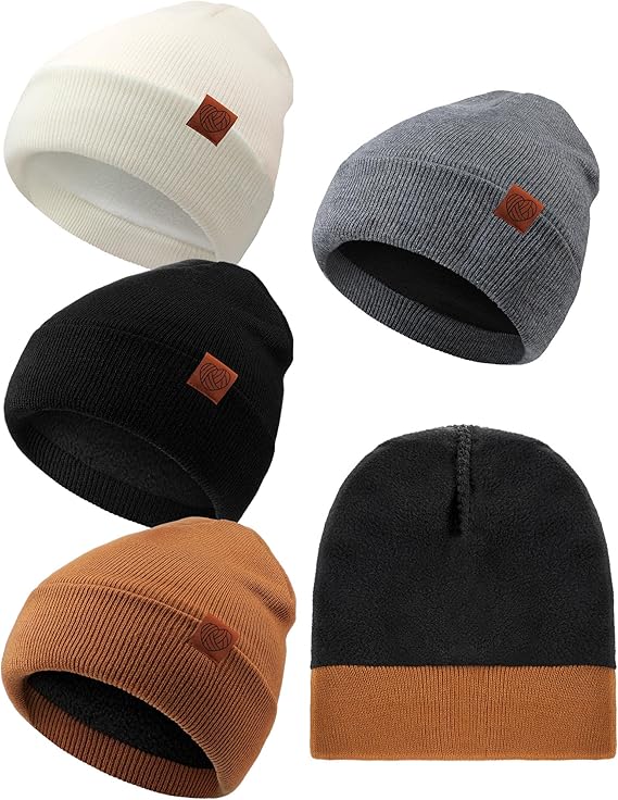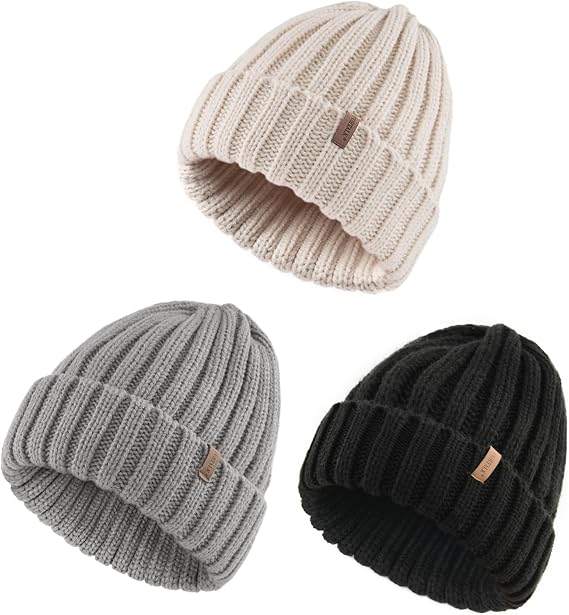 4 Pack Beanie Hats for Women Fleece Lined Winter Hats Soft Warm Adults Rib Knit Cuffed Beanies for Winter Unisex