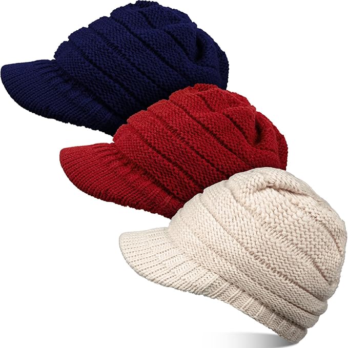 Women Winter Knit Hat Winter Brim Beanie Hats for Women Slouchy Beanie Cap with Visor Warm Newsboy Skull Cap