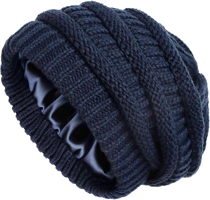 Winter Knit Beanie for Women Satin Lined Cable Thick Chunky Cap Mens Soft Slouchy Warm Hat