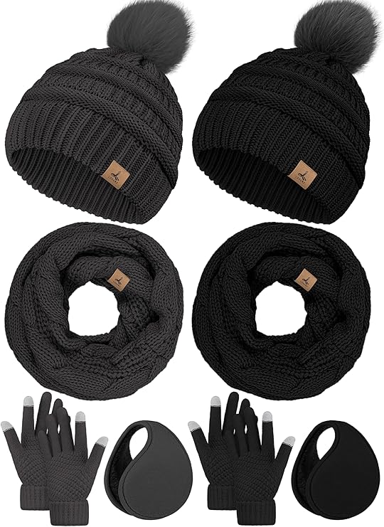 4 Packs Winter Warm Set Knitted Pompom Hat Scarf Touch Screen Gloves Ear Warmer 4 In 1 Set for Men or Women